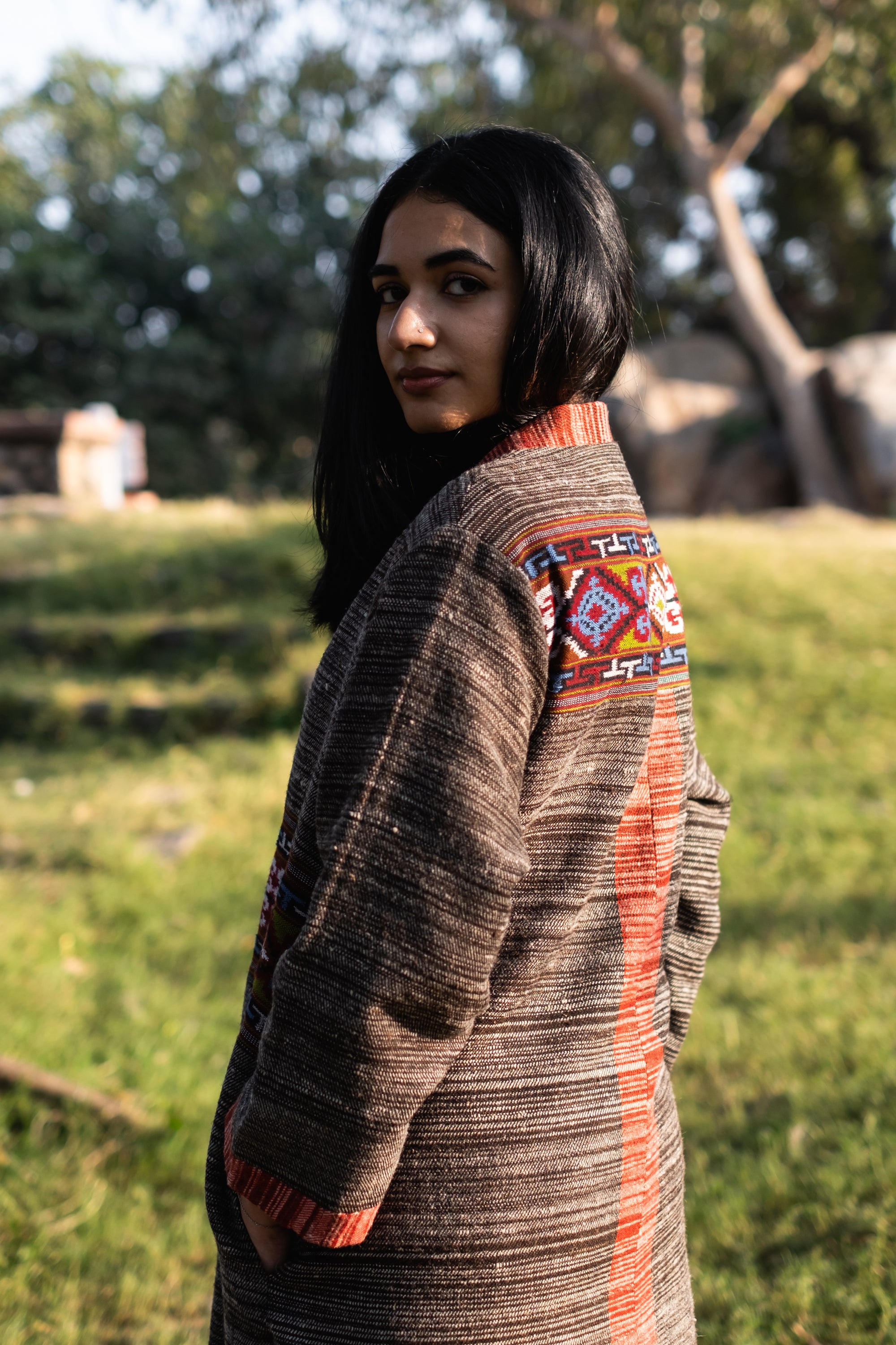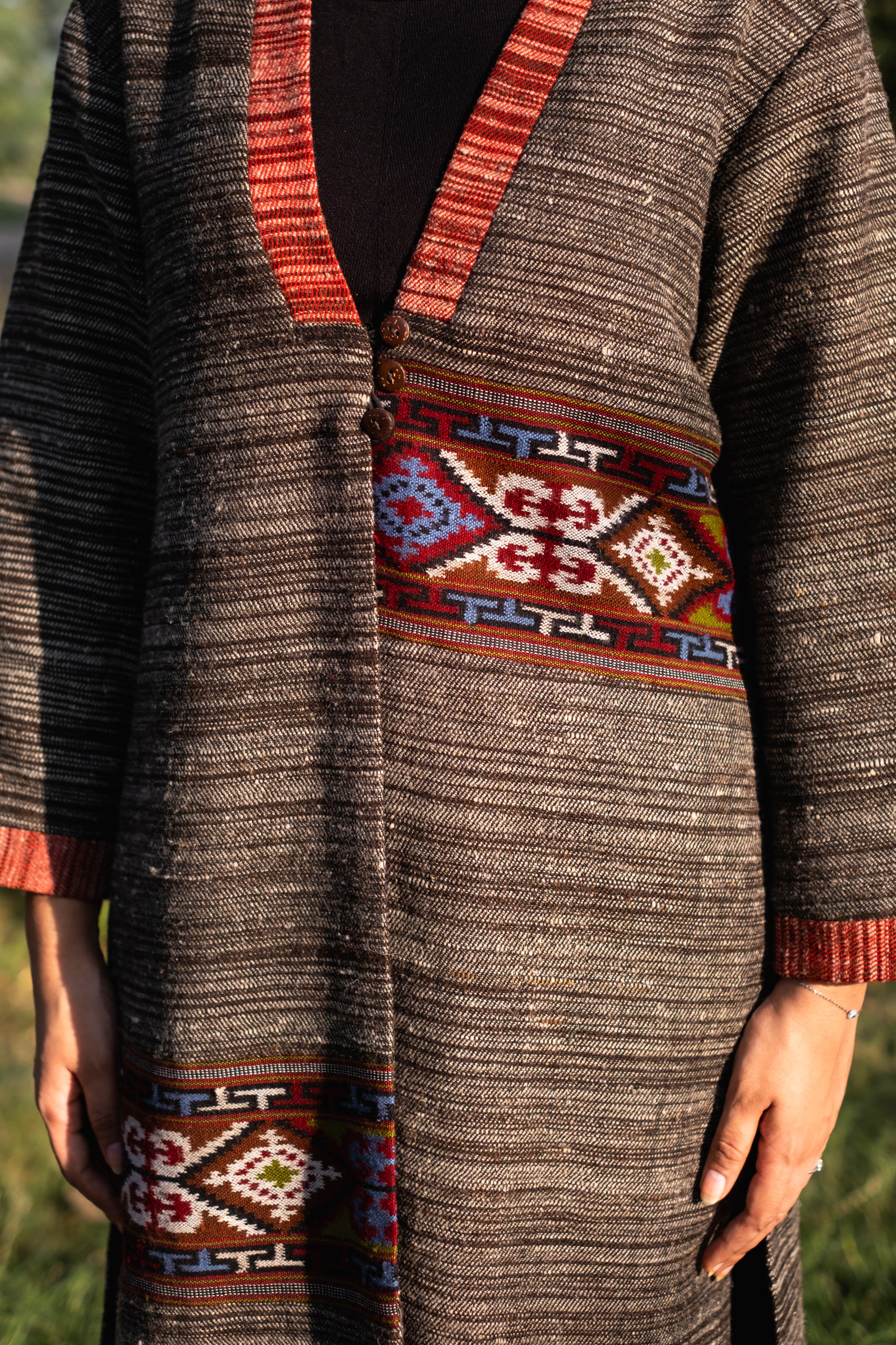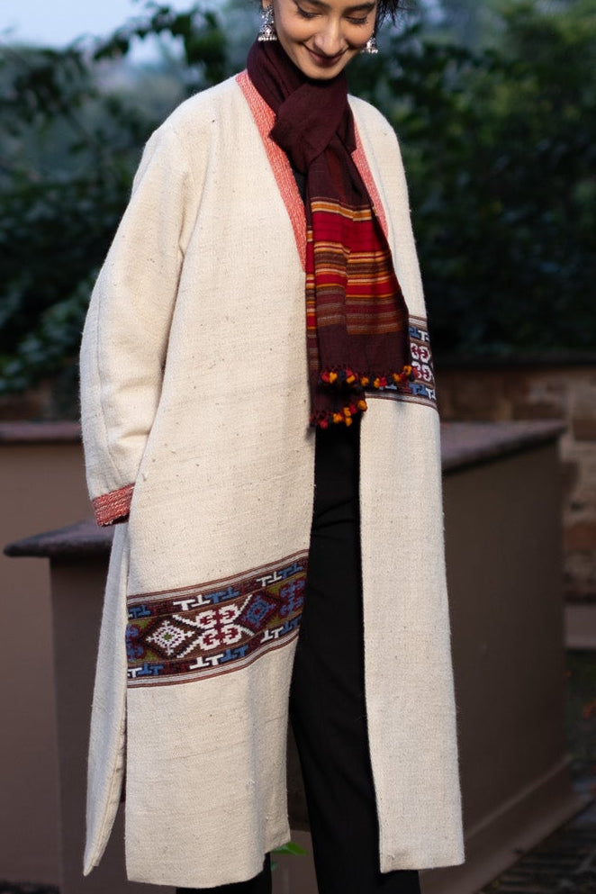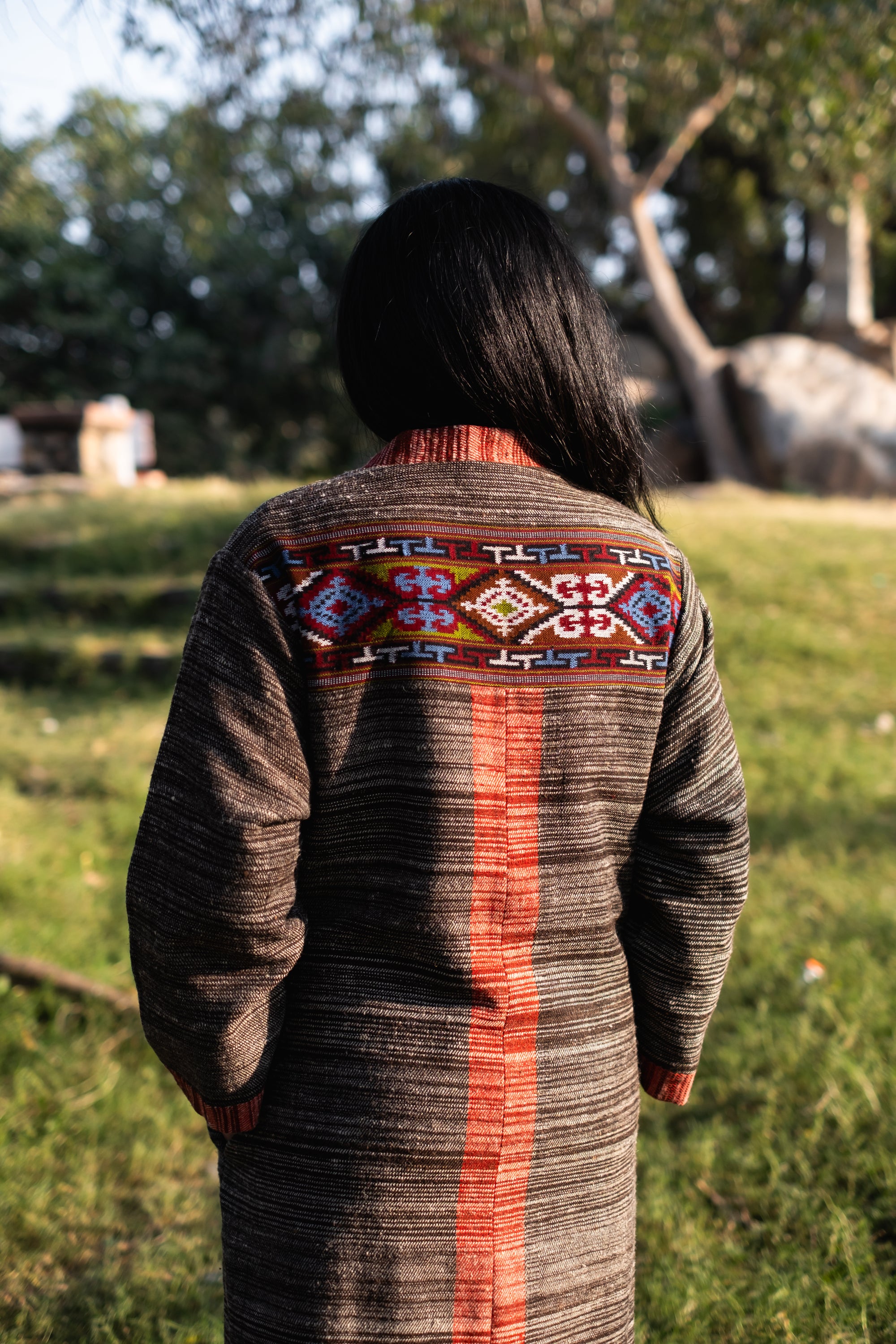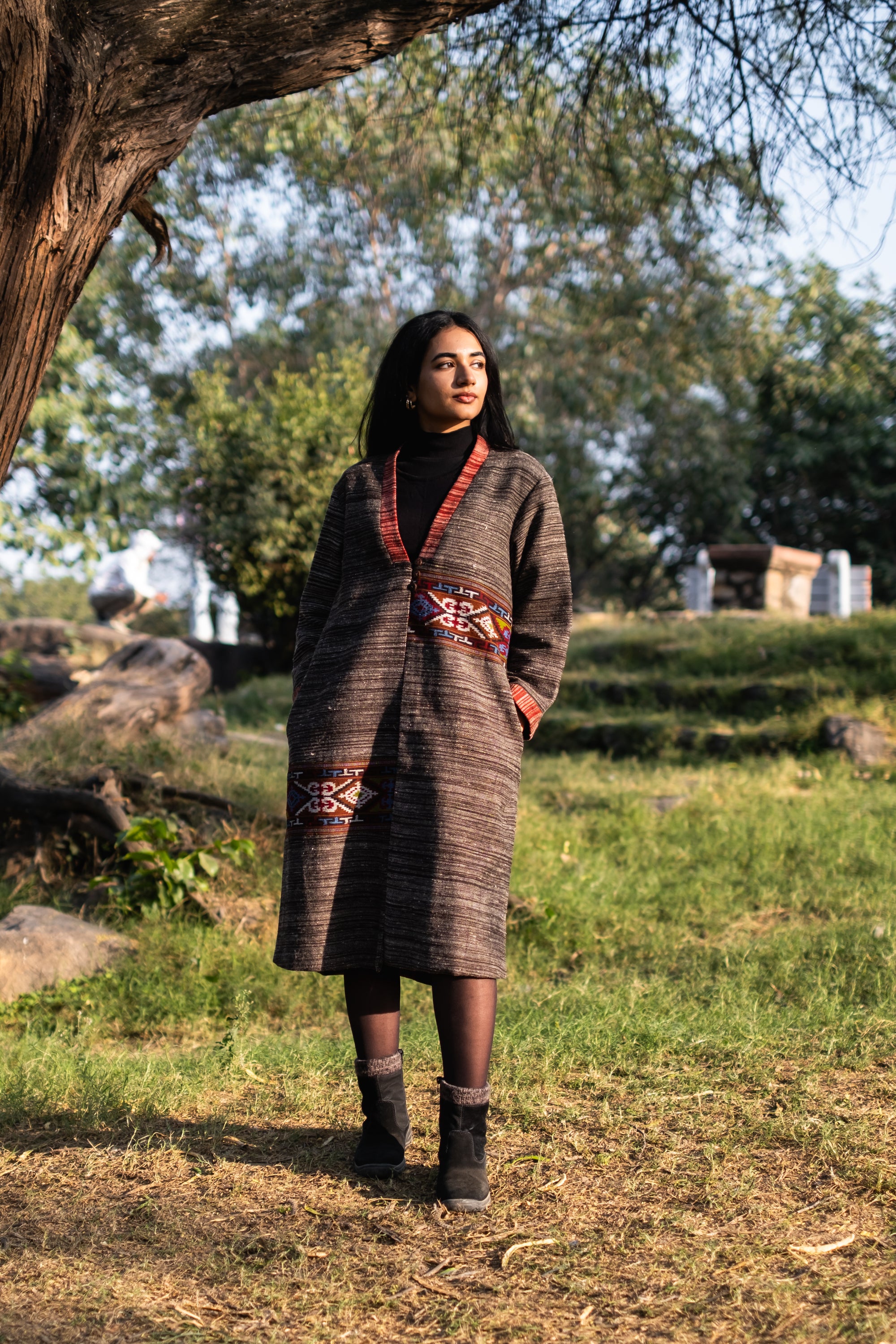 The Tragopan Yak Wool Long Coat is crafted with authentic handloom fabric from the high mountains of the Himalayas