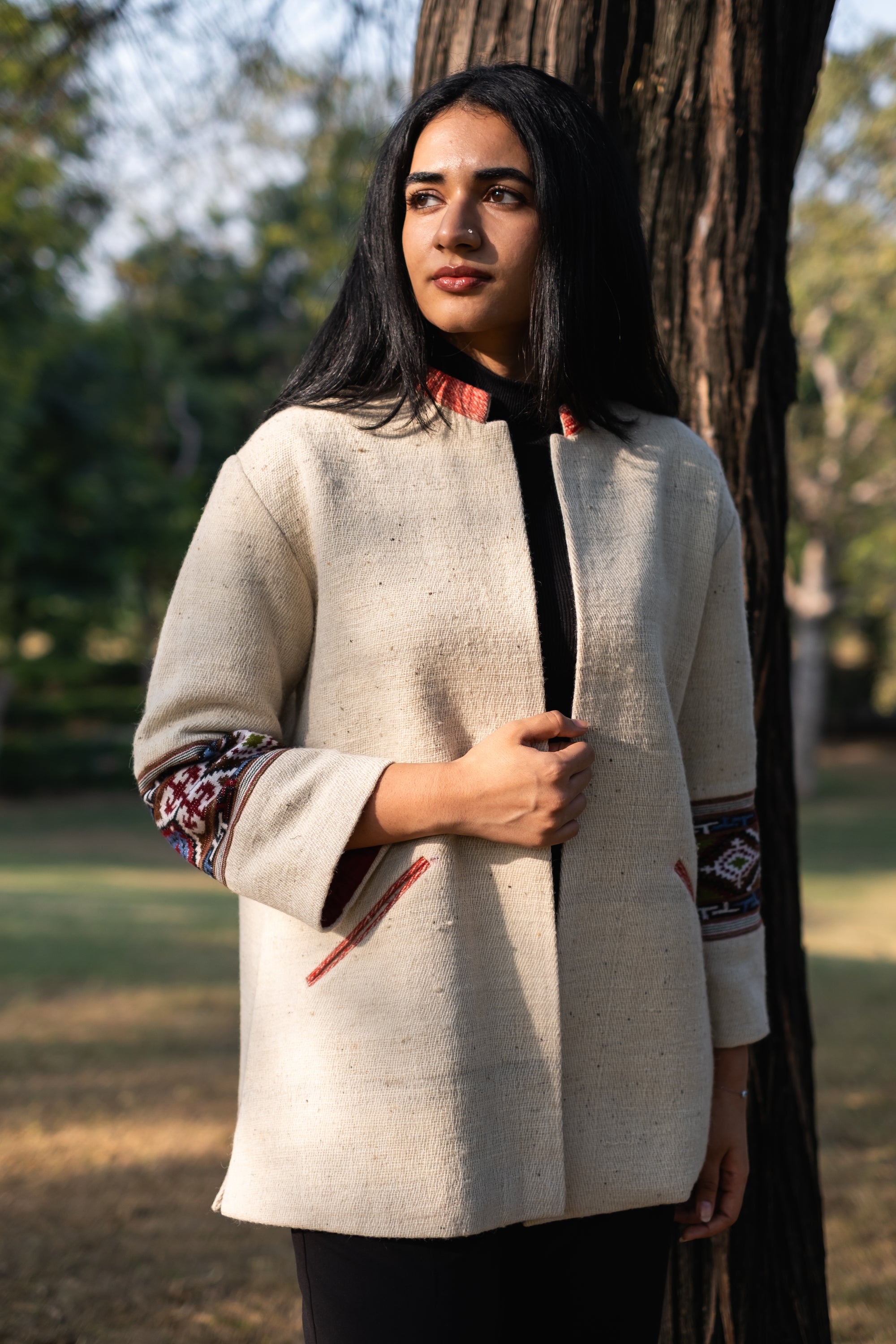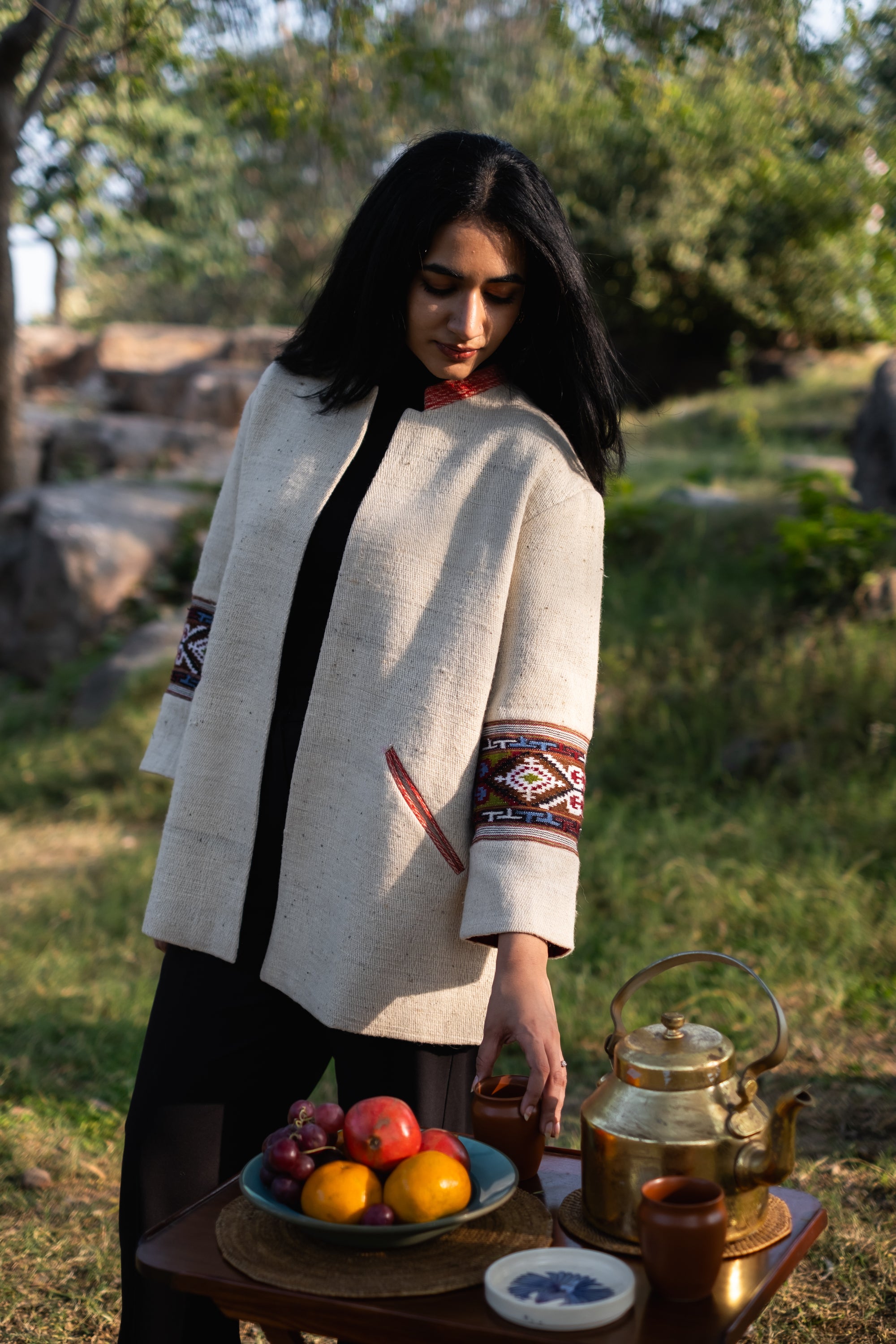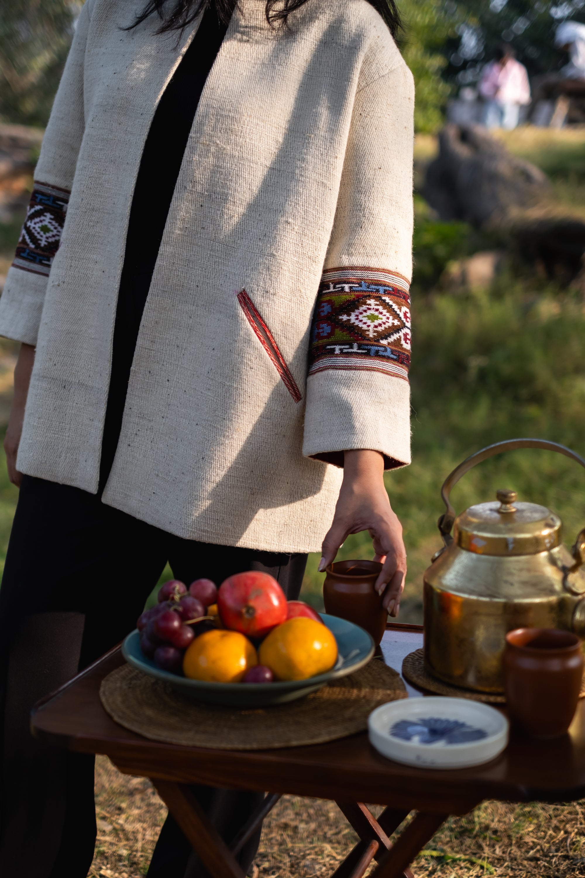 Monal Cropped Suit Handloom Jacket ~ Cream