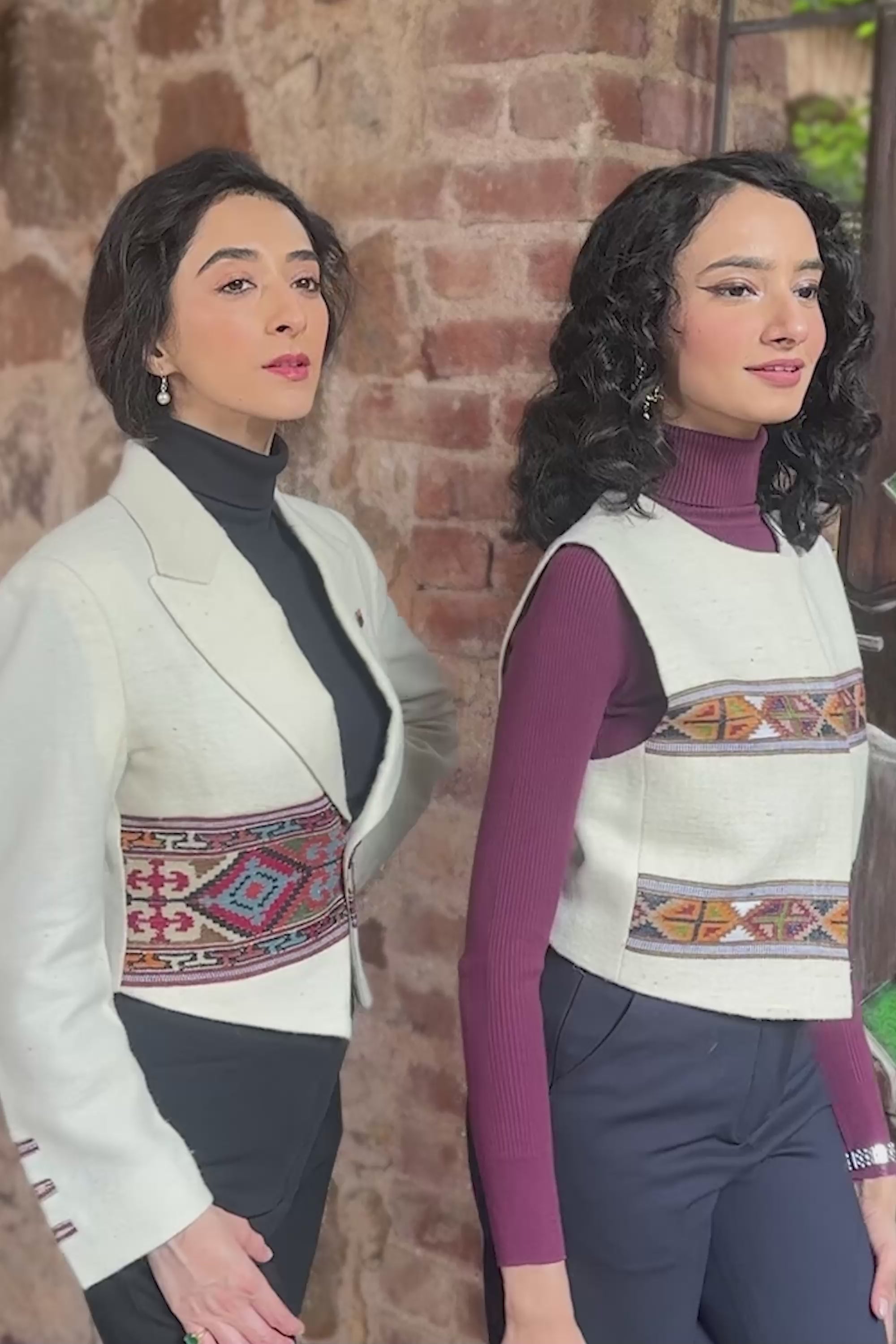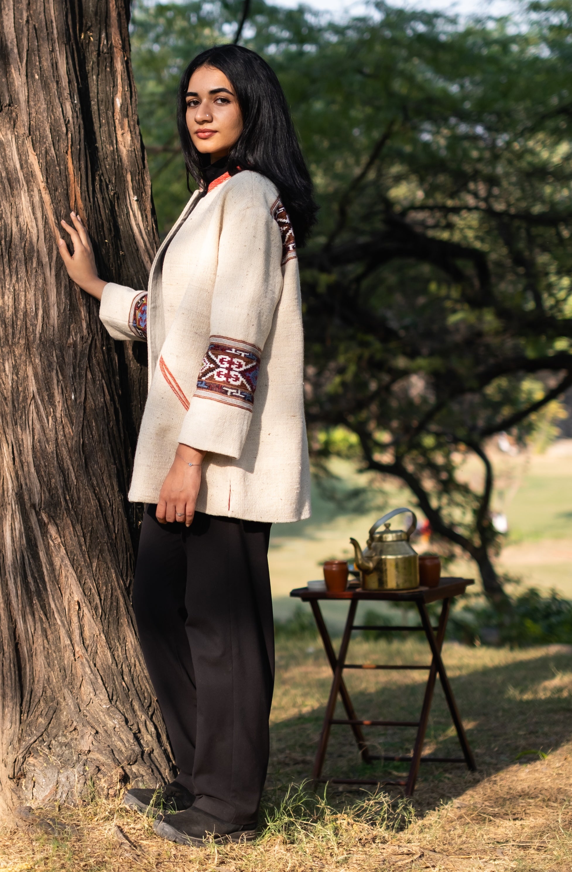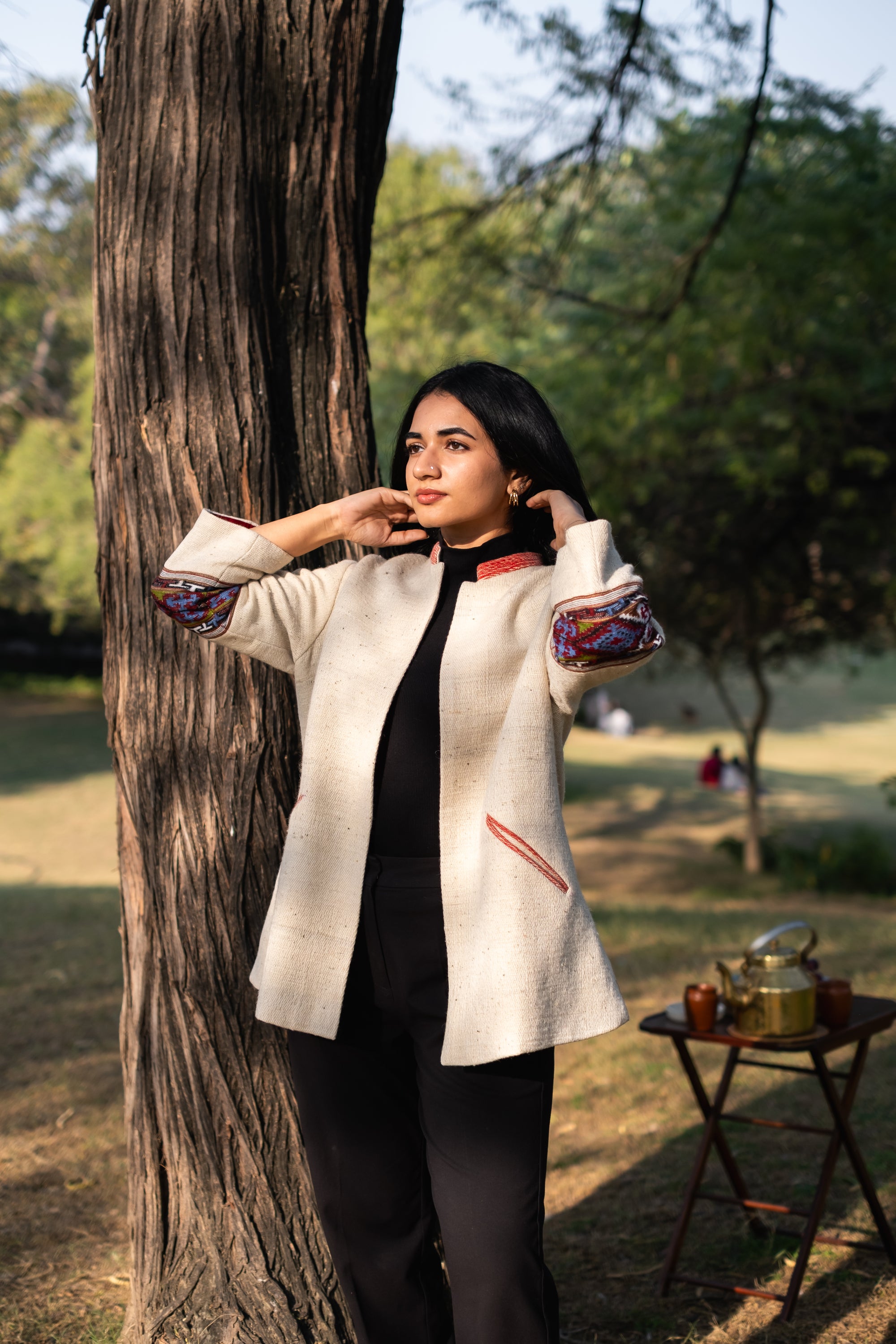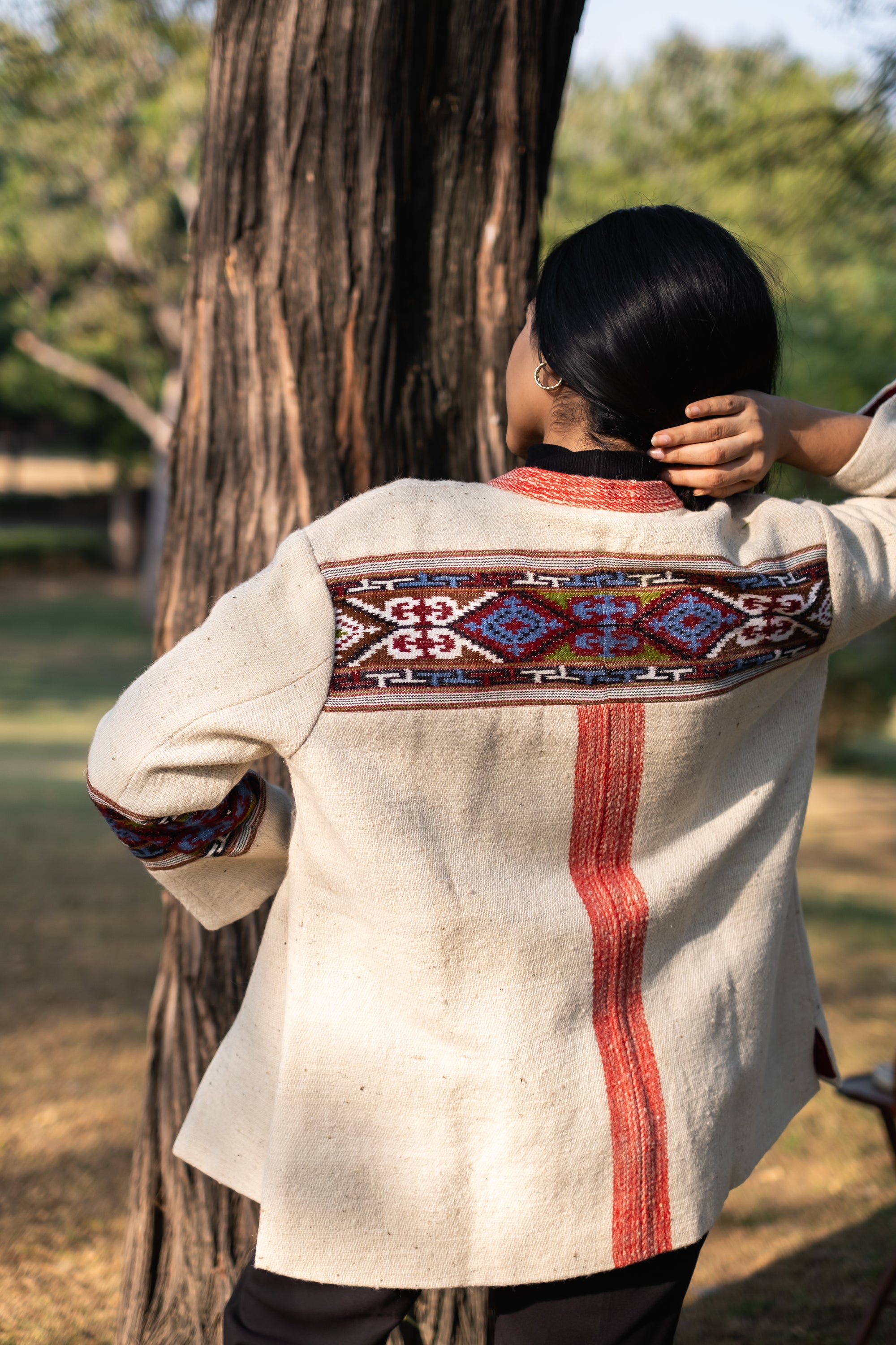 Monal Cropped Suit Handloom Jacket ~ Cream