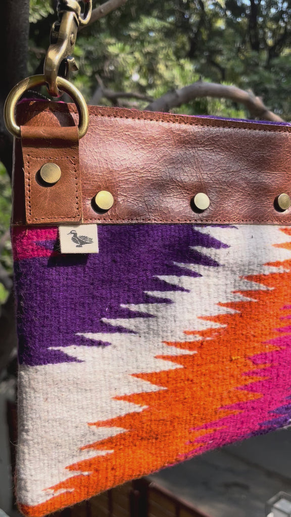 The Whistle Duck Sling Bag is meticulously handcrafted from traditional flat-woven rugs made made to size, using hand-spun cotton. Once used as floor coverings and layered over handwoven cots, these heritage textiles are thoughtfully reimagined by MURGABI into distinctive, contemporary sling bags.