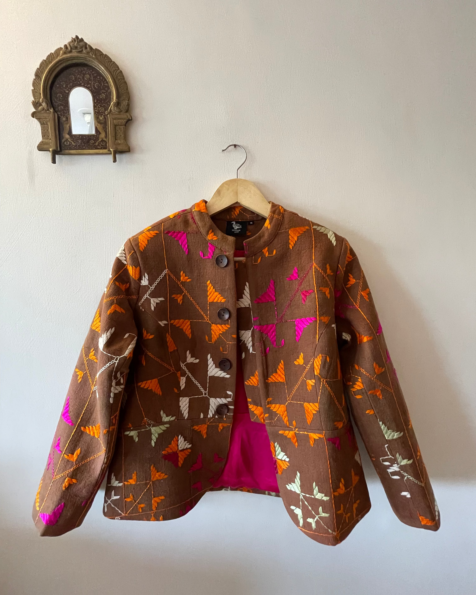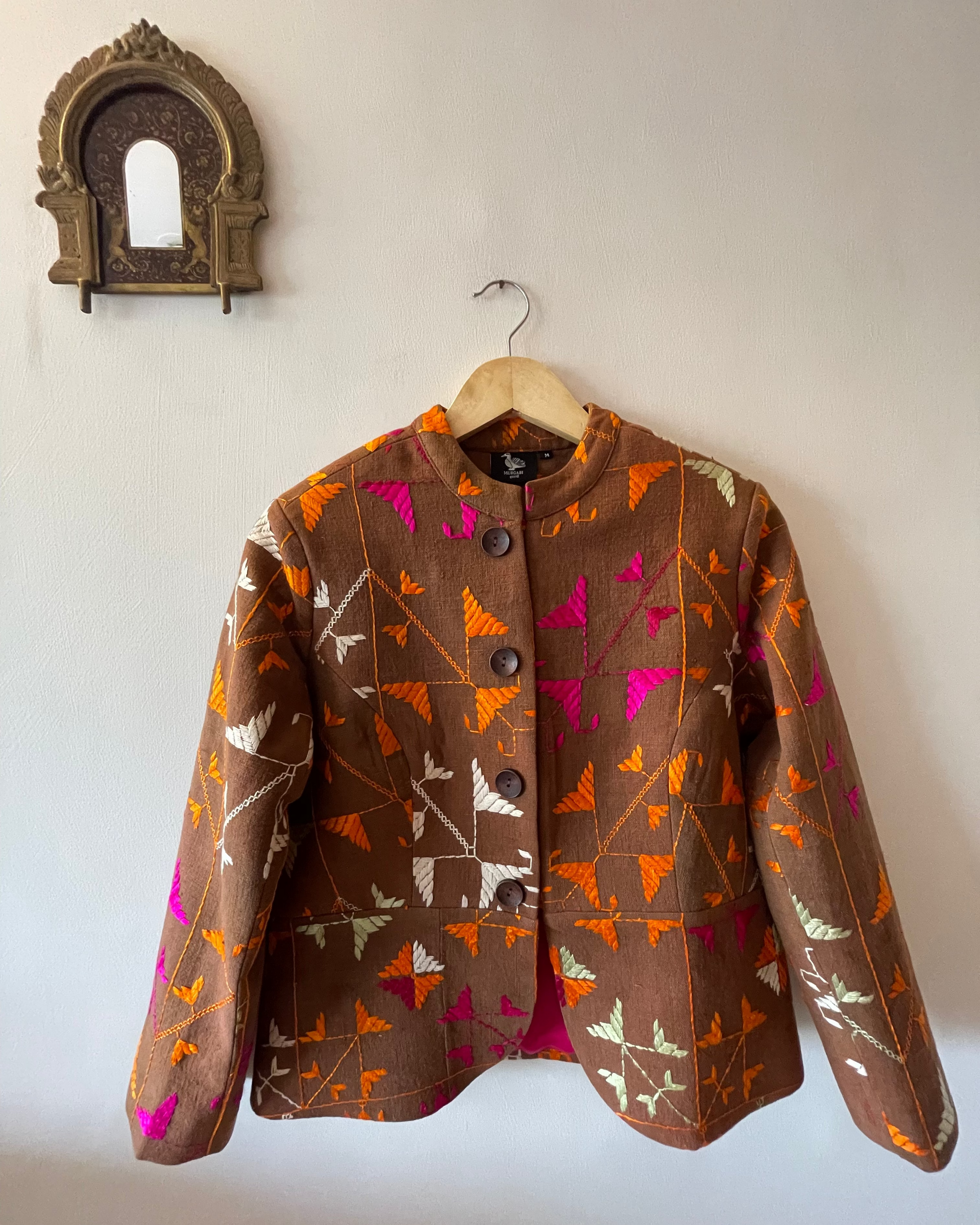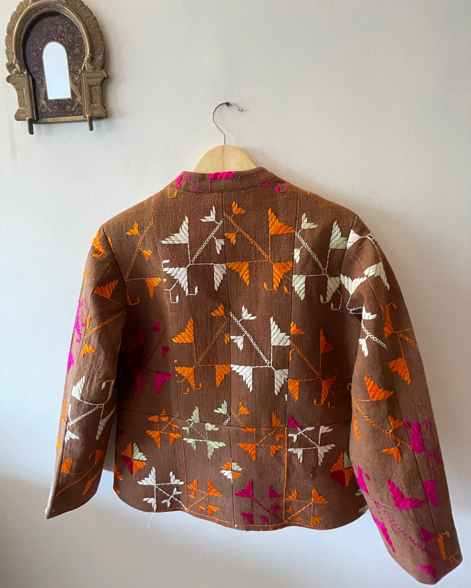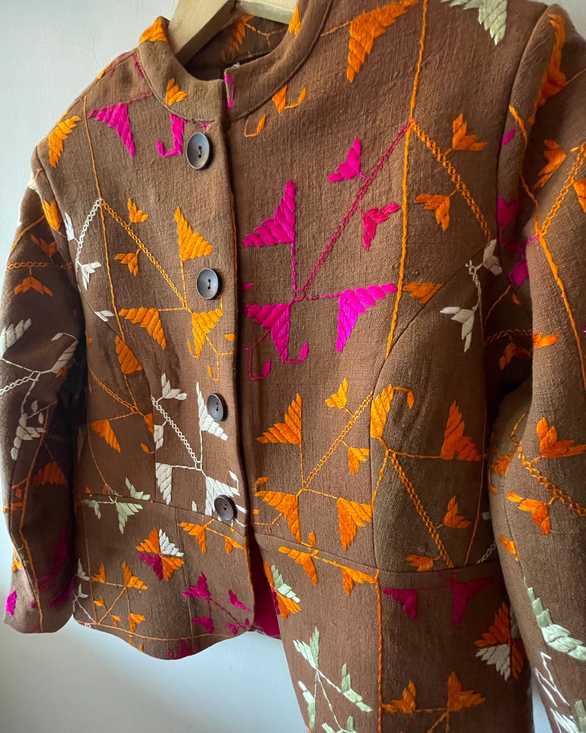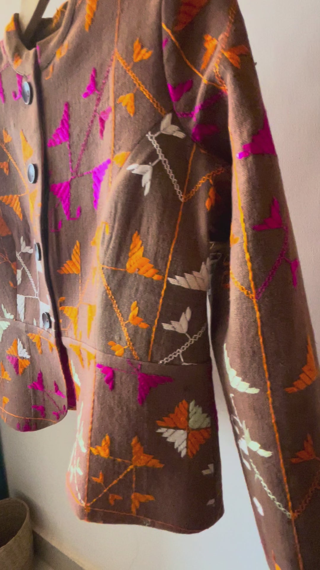 Phulkari On Yak wool A-Line Coat ~ Rust on Grey