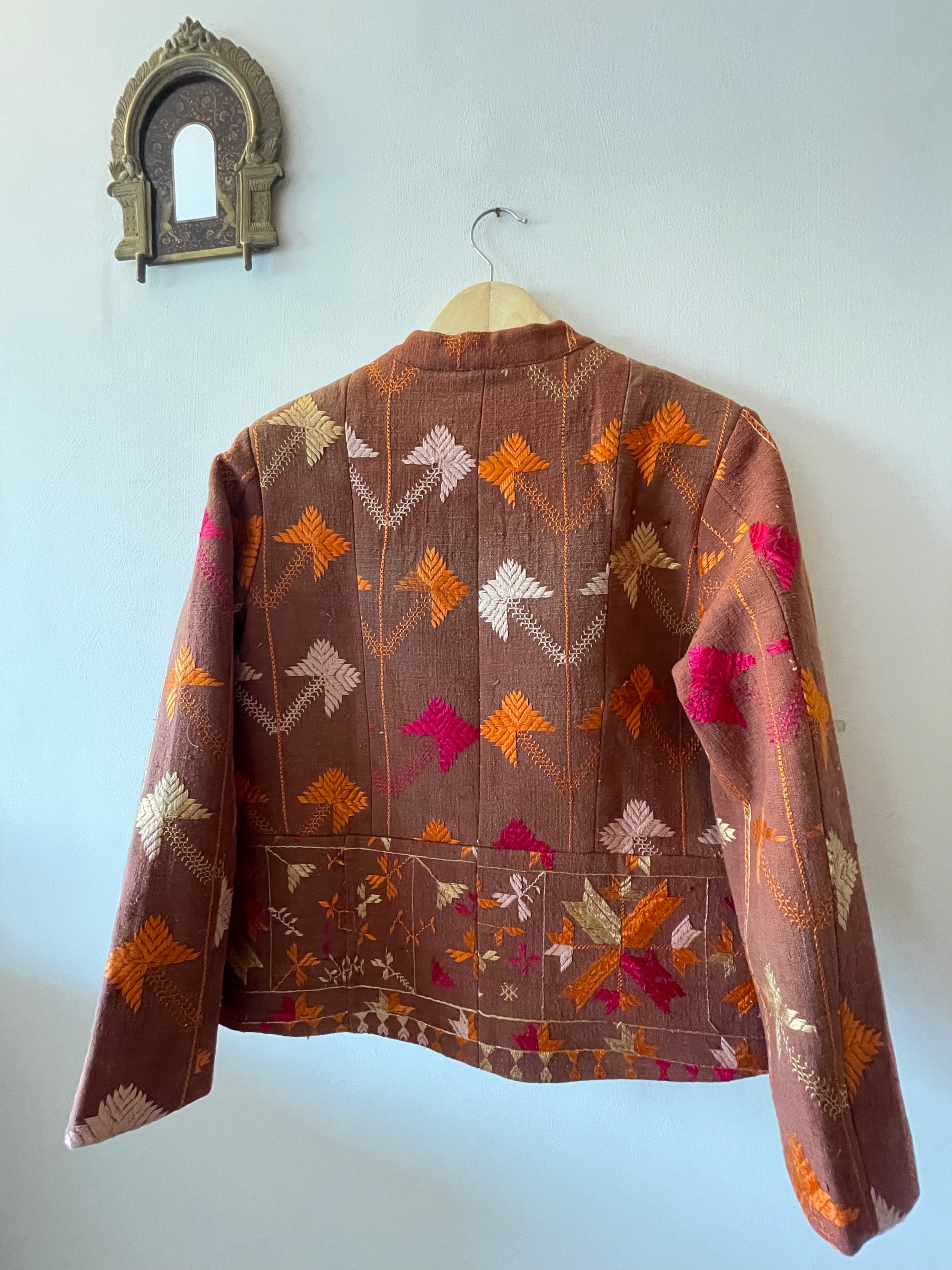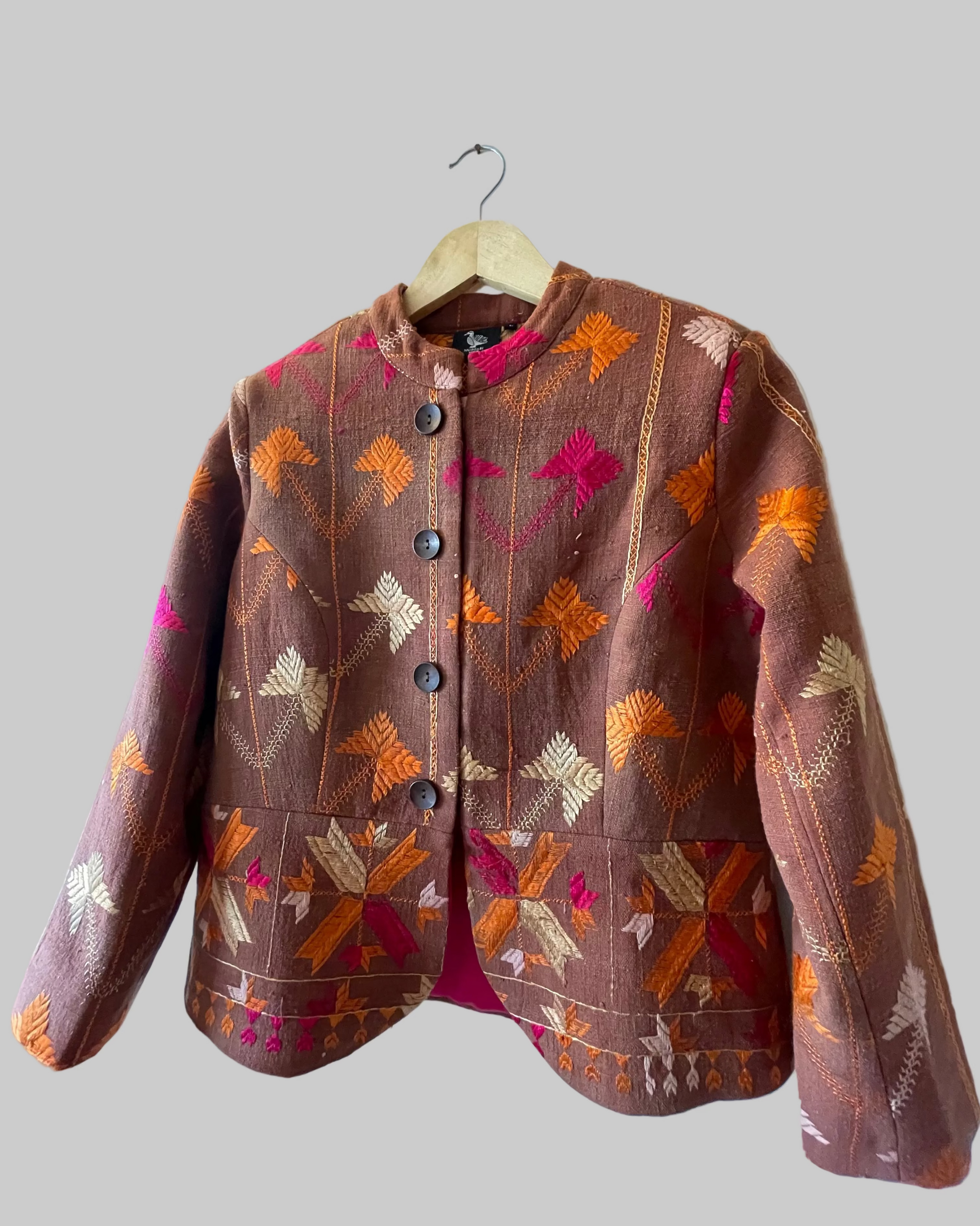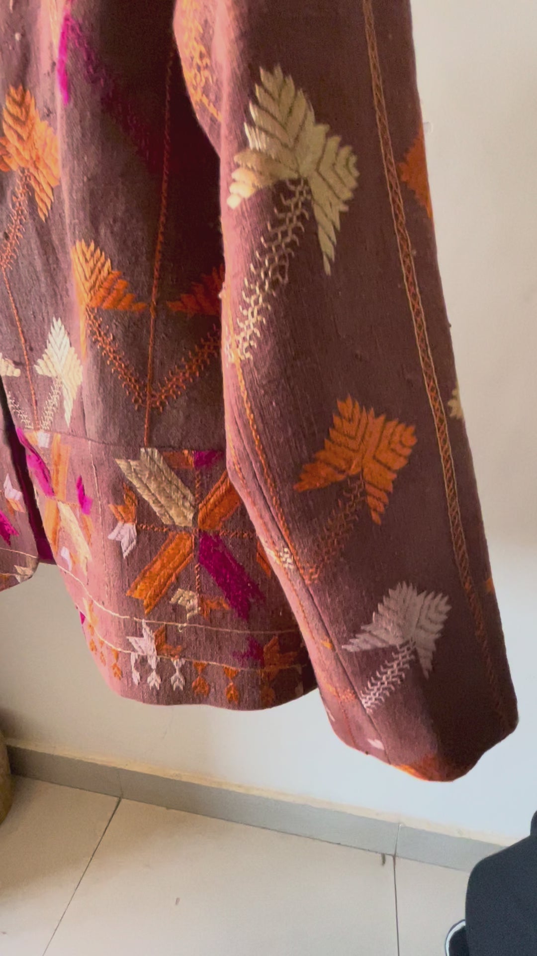 Phulkari On Yak wool A-Line Coat ~ Rust on Grey