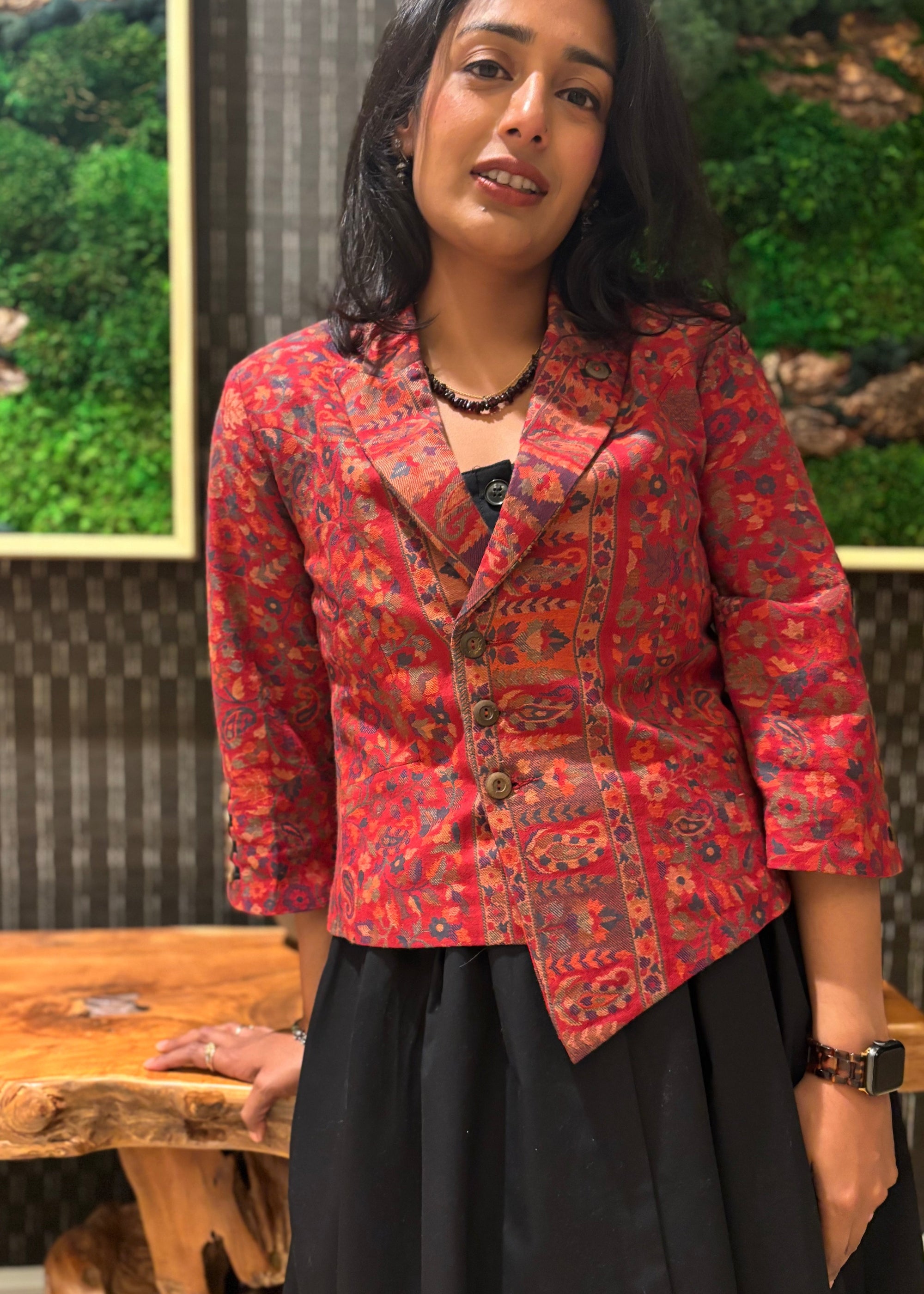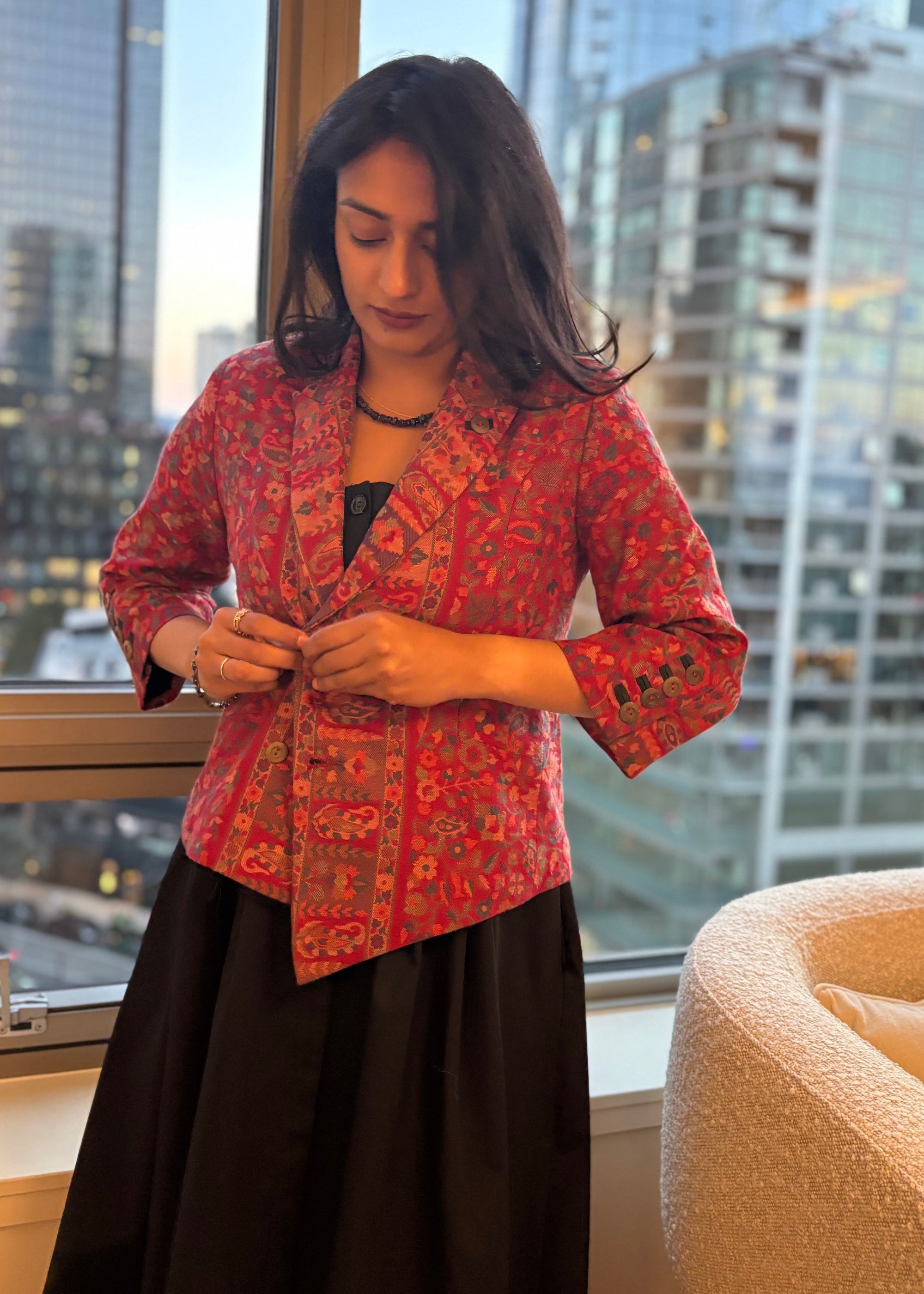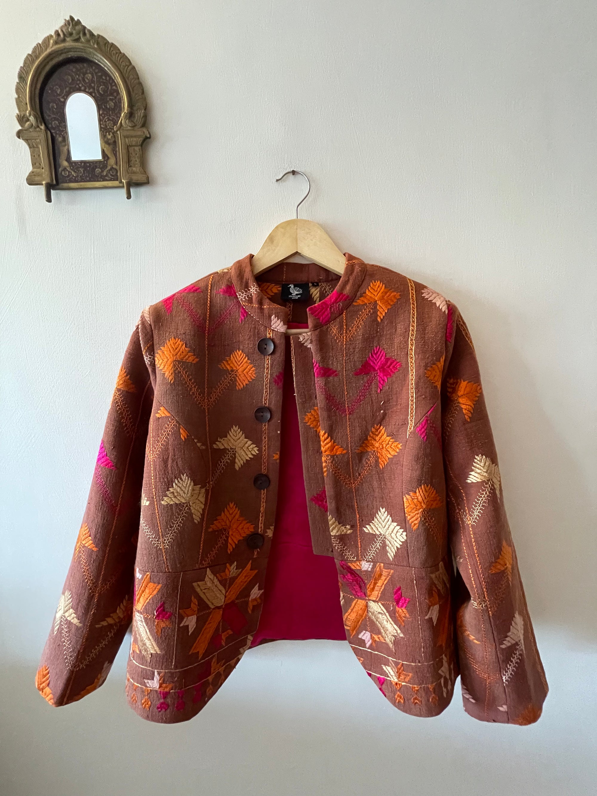 Phulkari On Yak wool A-Line Coat ~ Rust on Grey
