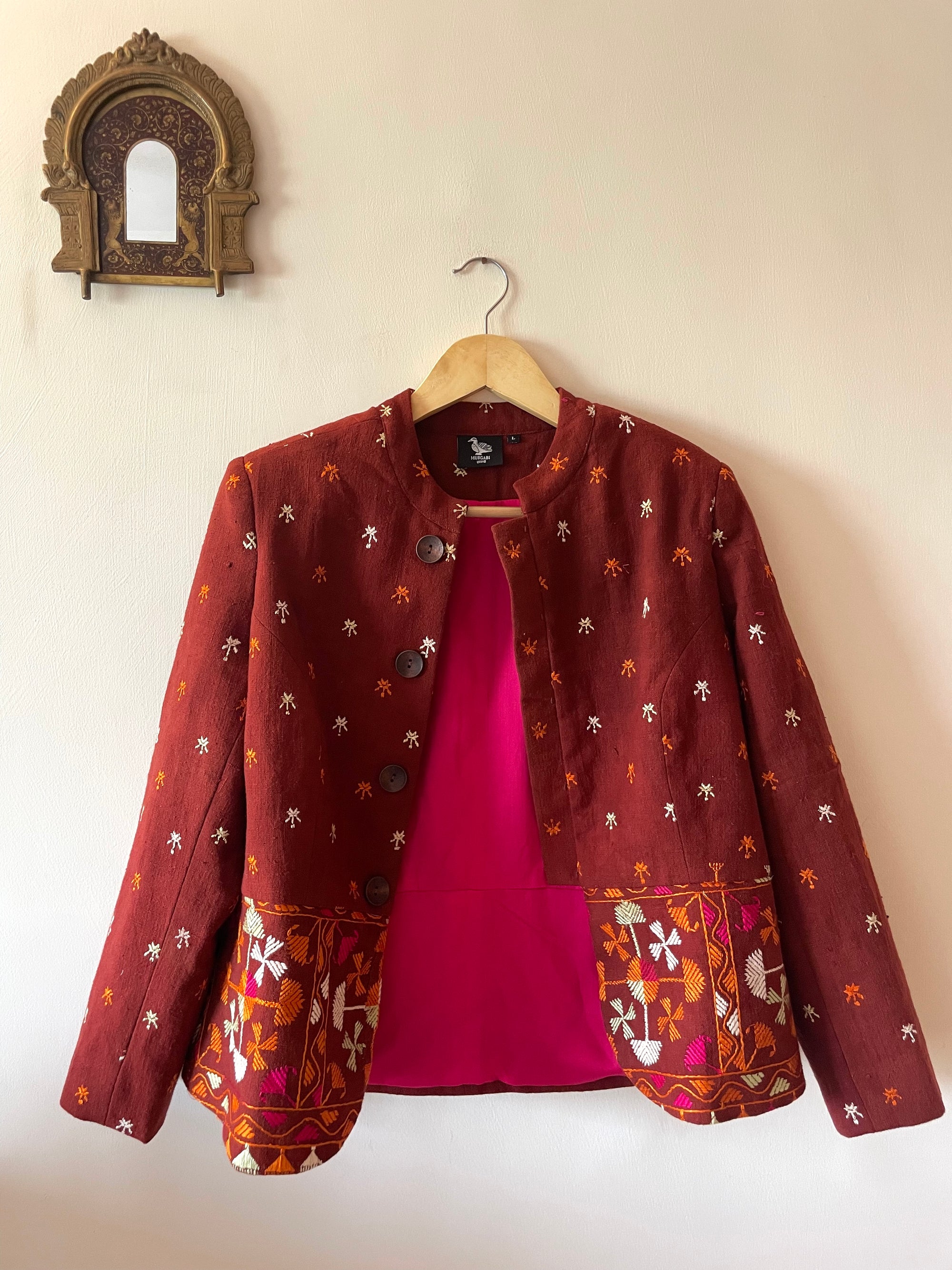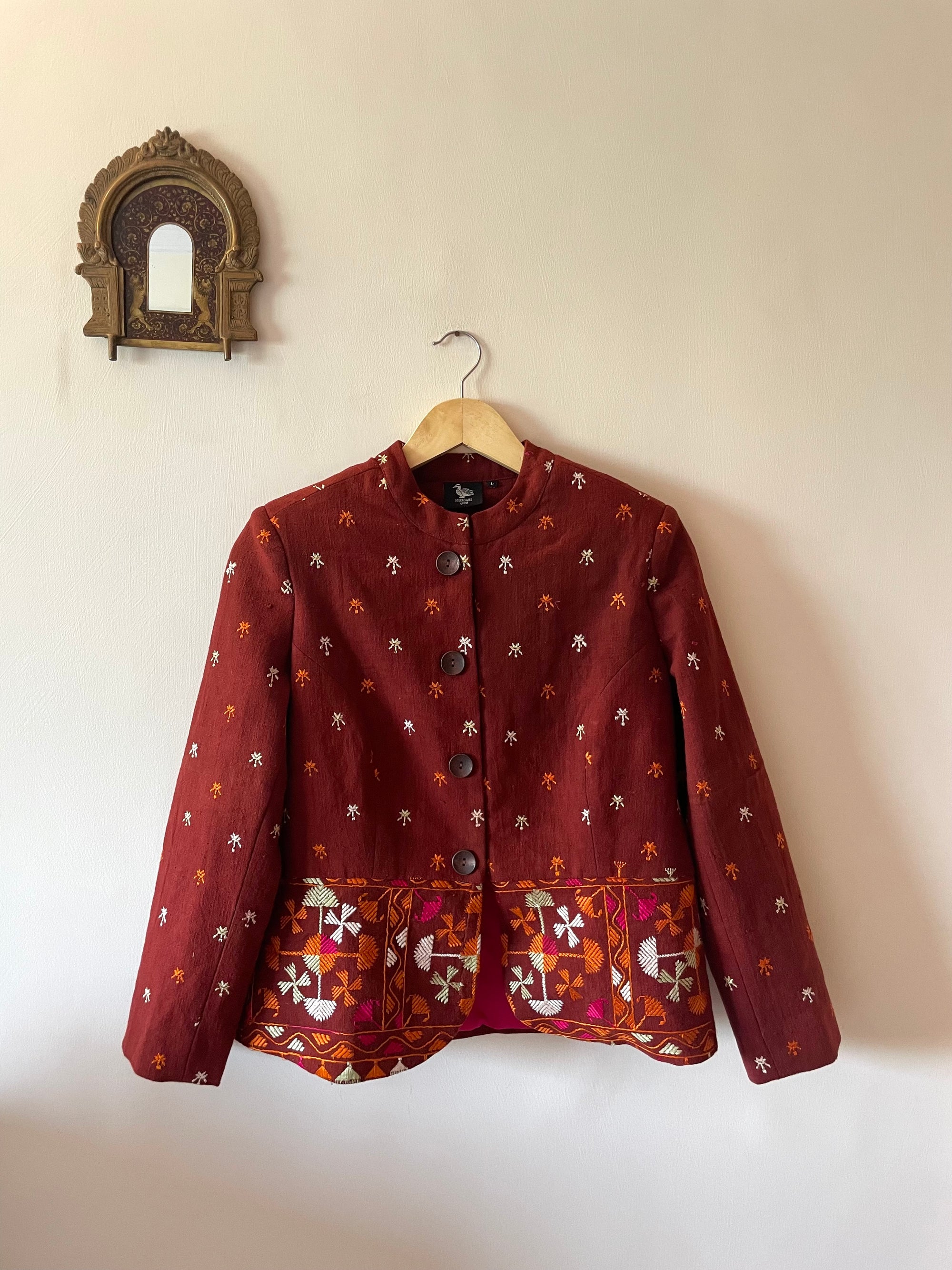 Saaras Blockprint Silk Kantha Overlay ~ M